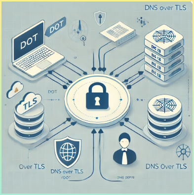 DOT(DNS over TLS)는 DNS 트래픽을 TLS(전송 계층 보안) 프로토콜로 암호화하여 전송하는 방식이다.